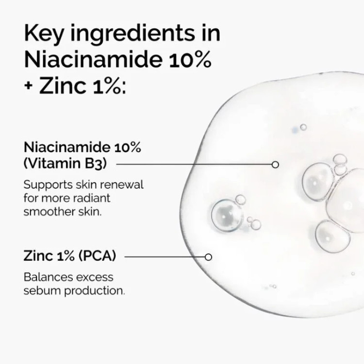 این محصول پرفروش برند The Ordinary با ترکیب علمی از نیاسینامید (ویتامین B3) و زینک PCA فرموله شده تا چربی پوست را متعادل کند، منافذ باز را کاهش دهد و به پوست ظاهری شاداب و یکدست ببخشد